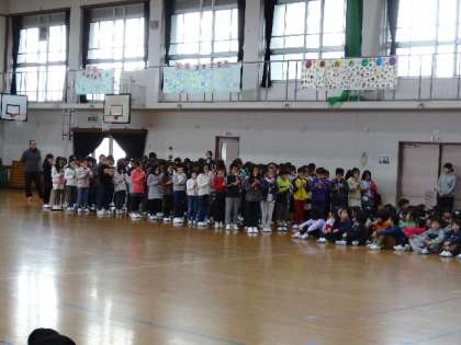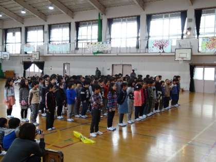 はじめのあいさつの次は,1年生,2年生,3年生と各学年卒業お祝いのメッセージと歌や応援,リコーダーの演奏のおくりもの。