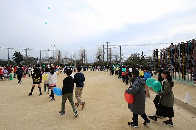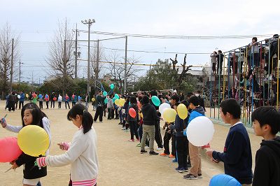 今日は,卒業記念事業の一つ,恒例の『風船飛ばし」の日。