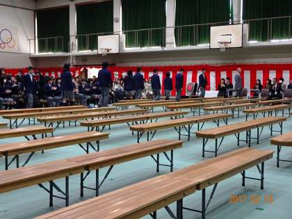 中学校の吹奏楽部の生の演奏で,卒業生の入場が始まります。