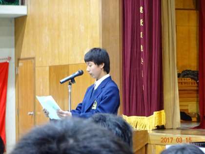 在校生からの,先輩に対する感謝と在校生としての決意の言葉。