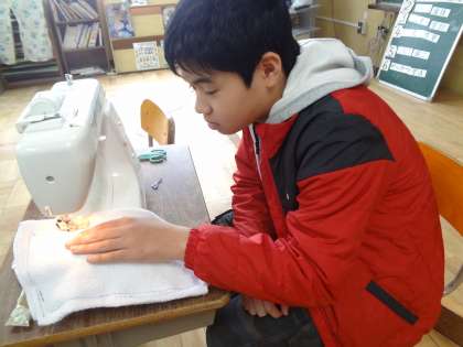 いよいよ卒業式!6年生二人は,そらいろ学級の下級生のためにミシンで雑巾を縫ってプレゼントしてくれました。「この雑巾で教室をきれいにしてください!」最後の掃除の時間は,チャイムがなっても丁寧に掃除をしてくれる二人でした。ありがとう!6年生!