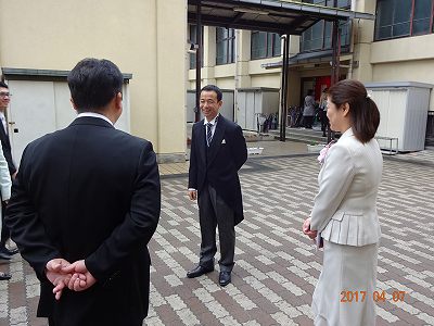 式前のリラックスした様子の,西賀茂中学校W校長先生。その横には,あら,大宮小前PTA会長のYさんが。Yさんは,本年度より西賀茂中学校PTAの会長さんです。引き続き,ご苦労様です。
