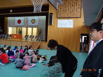 担任発表です。順番に本年度の教職員の紹介をしていきました。