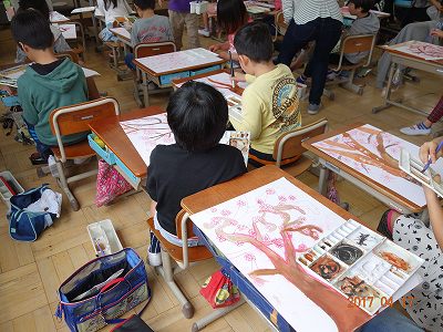 子どもたちの描いている桜は,満開の桜かしらねー。