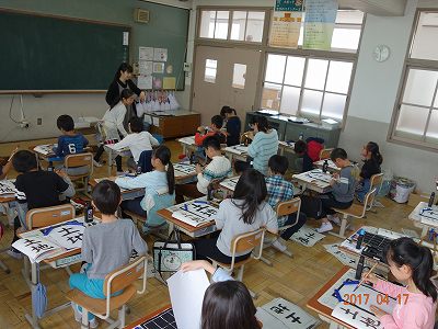 2組は,お習字の時間です。