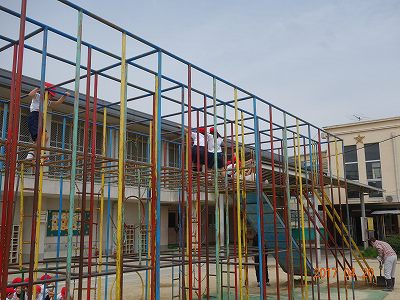 1年生の間は,総合遊具の最上段に昇ることは禁じられています。