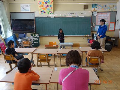 そらいろ学級をのぞくと,自己紹介の練習。