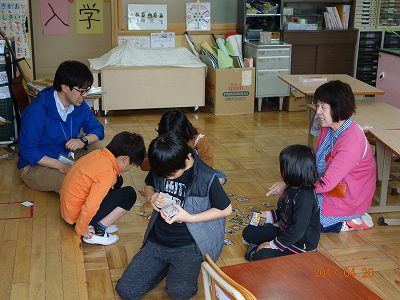 上手に言えましたね。そのあとは,カルタ遊びです。