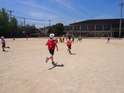 基本的なルールを覚えた子どもたちは,バトンパスが勝利の鍵を握っていることに気が付きました。