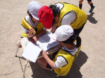 ときにはグループで作戦会議を開き,グループで練習をしながら,一生懸命に勝利を目指して頑張っています!