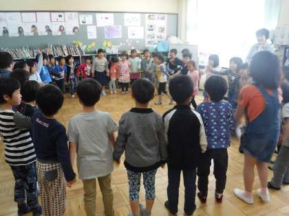 今日は,1年3組のみんながそらいろの教室に来て交流しました。走るのが好きな人,本を読むのが好きな人,絵を描くのが好きな人いろんな人がいるけれどみんな・・・「おおみやっこ!」と大きな声で答えてくれる1年生でした。中間休みにさっそく遊びに来る1年生!帰るときには,「また来ていいですか?」と喜んでくれる1年生でした。