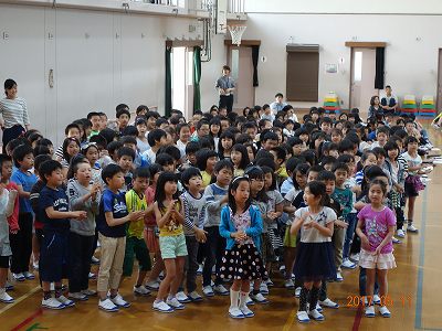 2年生の歌です。大きな口をあけて,元気いっぱいの歌声。