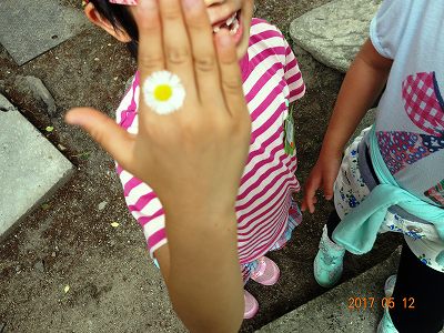 お花の指輪を見せてくれる子どももいました。上手に茎を指で挟んでいるんですね。
