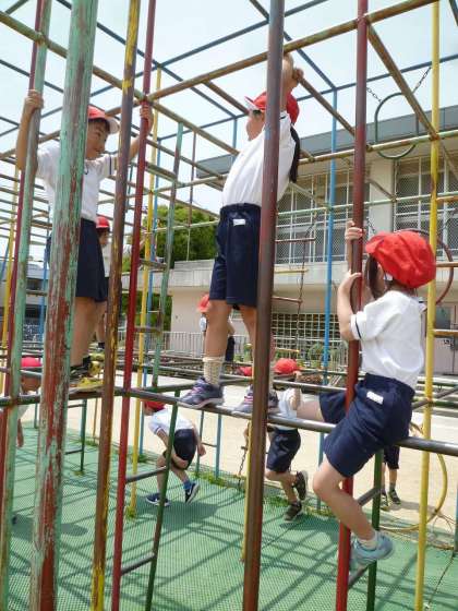 遊具の正しい使い方を学習してから,みんなで大ぞうさんデビューをしました。しっかり握ること,急がずやることを約束しました。みんな大喜びでした。