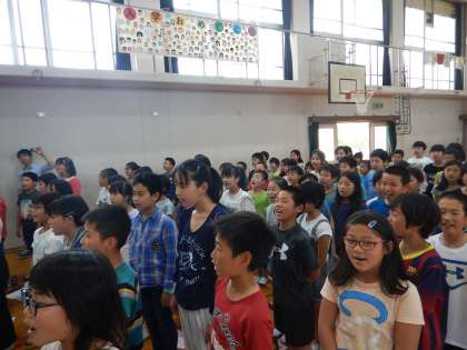 「ハロー!」のあいさつから始まり,元気な歌声を1年生にプレゼントすることができました。