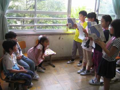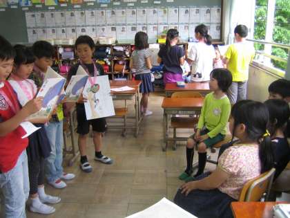 読み終わると,「上手やった」「おもしろかった」「声が大きかって,すごい」「国語の教科書を読んですごい」と,