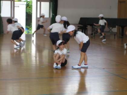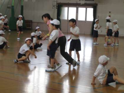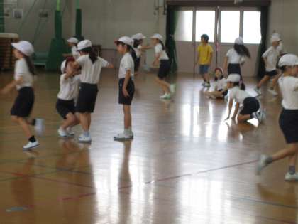 体育館で,体ほぐしの運動をしました。