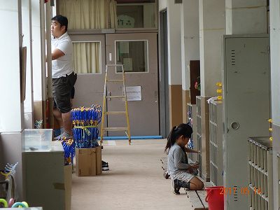 それでも,窓の高いところを掃除して下さっているので,なんとなく教室が明るくなったような気がします。