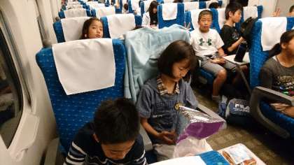 そう,新幹線はトイレがついていますので,みんなが行くと行きたくなるトイレも渋滞です。コォ〜〜〜〜コポっという音も慣れるまでドキドキでしょうか。