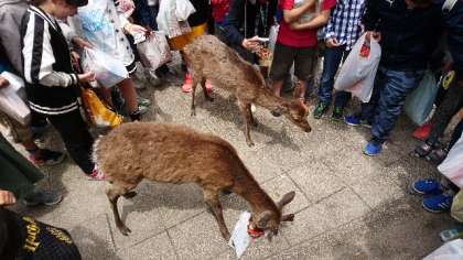 鹿におまんじゅう食べられた!
