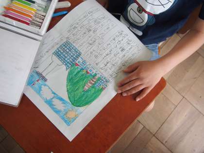 社会見学を通して気づいたことや考えたことを,絵と文章でまとめました。