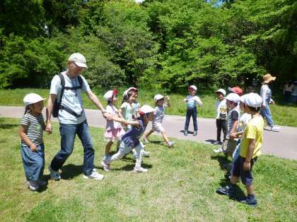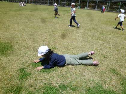 お弁当の後は,みんなで大芝生で遊びました。ごろーんと転がる子,おにごっこをする子などいろいろな遊びをして楽しんでいました。