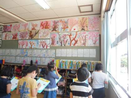 春に描いた桜の絵の鑑賞をしました。