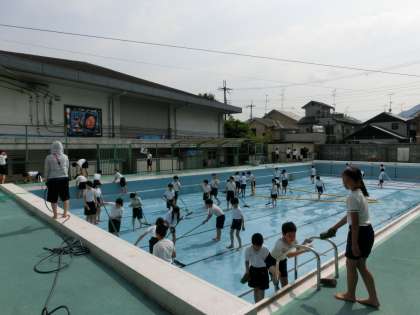 今日はプール掃除をしました。