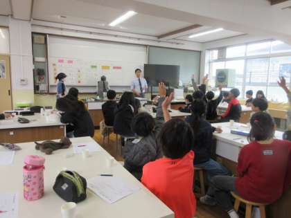 5年生は、食育アドバイザーの方々にご来校いただき、「出汁」について学ぶ授業をしました。
