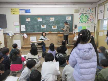 図書館について、知りたいことがいっぱいになった2年生。北図書館から、館長さんが学校に来てくださいました。子どもたちの質問に、ていねいに答えてくださいました。