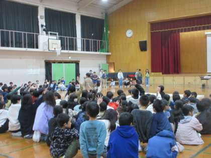3年生の学習発表会のリハーサルを行ったとき、4年生が見に来ました。4年生に応援してもらいながら、3年生は一生懸命発表しました。