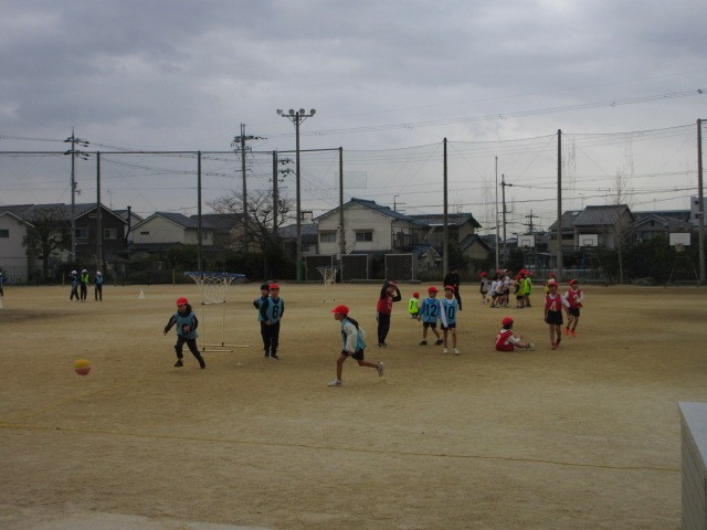 体育でパスゲームの学習をしました。グループで協力し、ボールをみんなでパスをして運び、ゴールをめざしました。