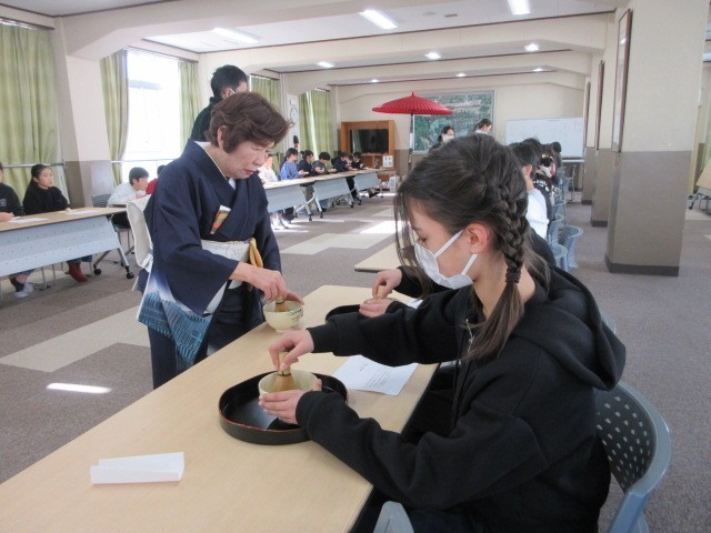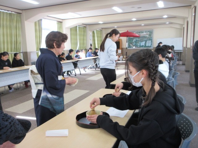地域の方のご協力を得て、茶道体験を行いました。日本の文化と直接ふれあう、すばらしい機会を得ることができました。