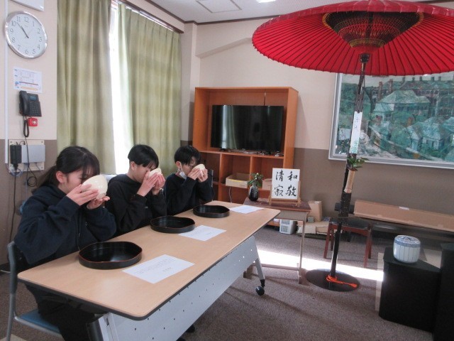 子どもたちは、おいしいお茶と和菓子を楽しんでいました。
