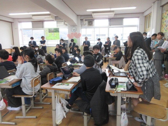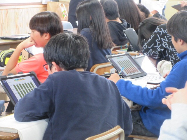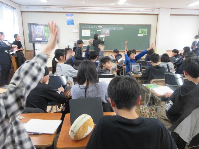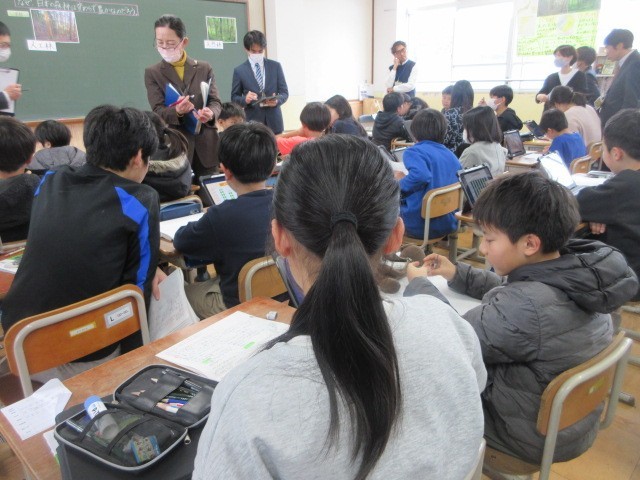 日本の森林の面積と世界の森林の面積を比べたり、人工林と天然林の面積の移り変わりから、学習問題をつくりました。学習問題について資料や既習事項を基に予想し、交流をすることで考えを深めました。子どもたちは、とても積極的に学習活動をすすめました。