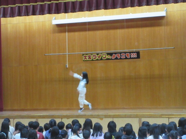 「大宮ライブ」を行いました。歌、ダンス、ピアノ、コント、劇、体操、なんでもOK。自分の得意なことでも、やりたいことでも、発表したい人は舞台で発表しよう、というものです。「発表は真剣に。やりきる。見ている人を楽しませる。」「発表を見る人は、応援する。拍手を忘れずに。あたたかい心で。」