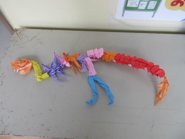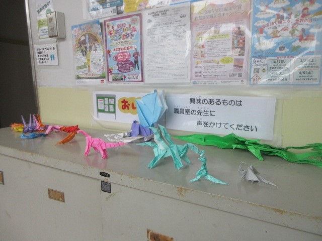 IPadで自分が作った折り紙の発表がありました。その日は、本物の作品が職員室前に飾られました。