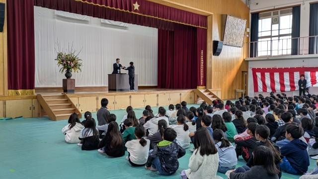 5年生の代表が、とても立派に修了証を校長先生から受け取りました。