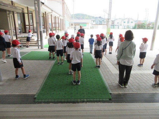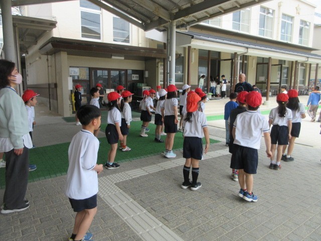 先生のあとに、声を出して、みんなで前や後ろ、右・左、ジャンプをして体を動かしました。