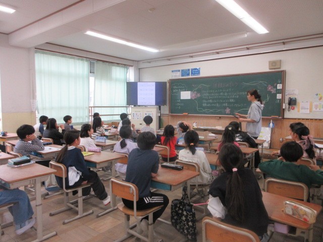 とても落ち着いて話を聞く4年生。頼もしい姿を見せていました。