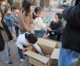 わらない体験が行われている体育館の前では、地域の方々による門松の準備がすすんでい...