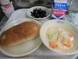 今日の献立は おさつパン(特別加工パンに変更) 牛乳 キャベツの米粉クリーム煮...