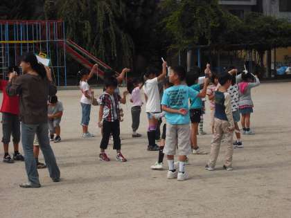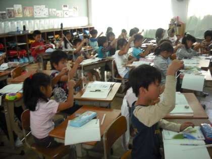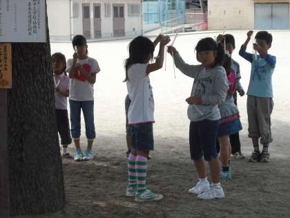 日なたと日陰の地面の様子の違いに興味・関心をもち,明るさや暖かさ,湿り具合を調べる学習を進めます。今日は温度計の使い方を学習し,実際に太陽の当たっているところと当たっていないところの温度を測って違いを感じています。