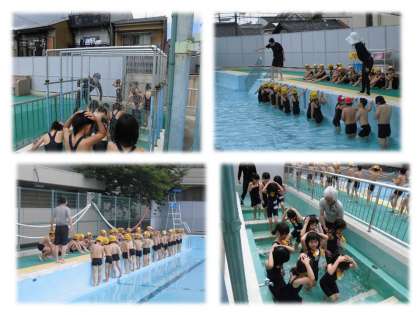 今日はそのハンドサインを覚え,プールサイドでは常に静かに指示を聞く練習を繰り返し,水慣れを楽しんでいました。