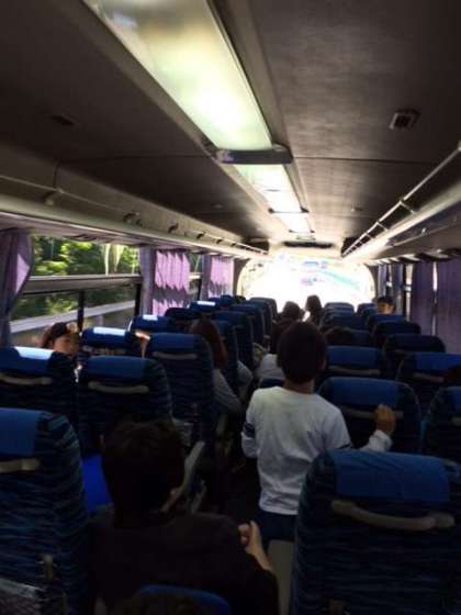 バスの中で, レクリエーション係が企画して, テレパシーゲーム, エンディングゲームをしています。