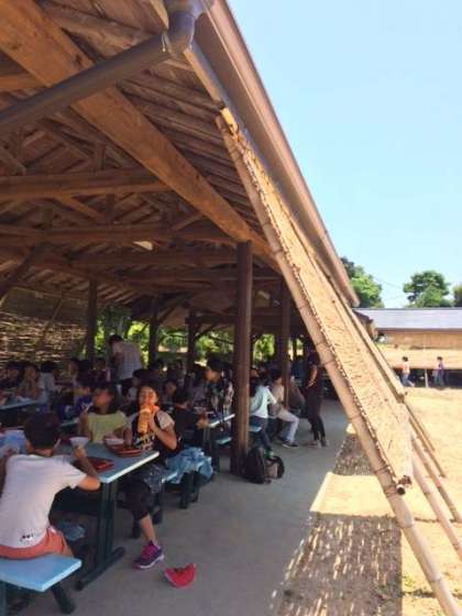 あずまやで食べています。