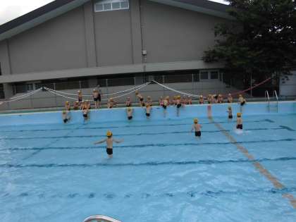 子ども達は,「大きなプールだな。」とうきうきしながら,プールを見ていました。