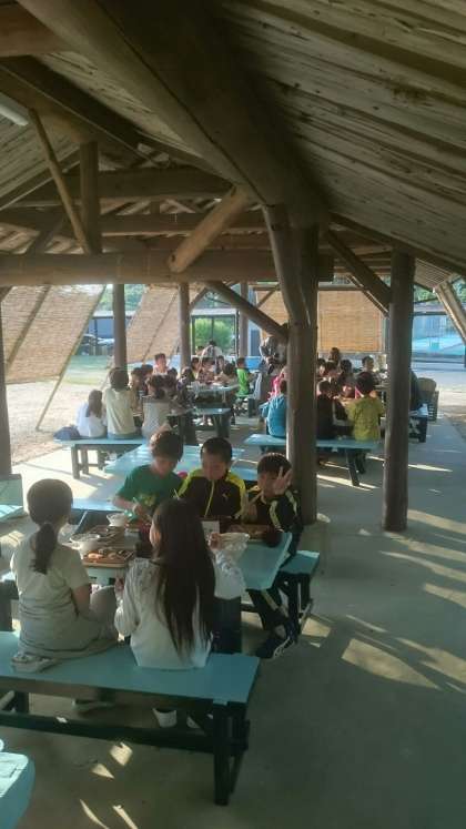 夕食の時間です。このあとはキャンプファイアーが始まります。