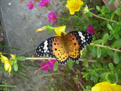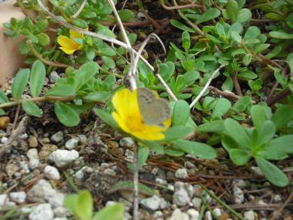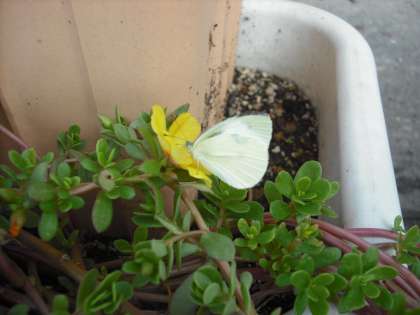夏の花ポーチュラカもそろそろ終わろうとしています。その,ポーチュラカに,モンシロチョウ・タテハチョウ・シジミチョウが集まってきています。