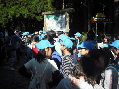花背峠で京都バスを降り,いよいよ入所ハイキングのスタートです。すがすがしい秋の道を自然を満喫しながら山の家に向かいます。